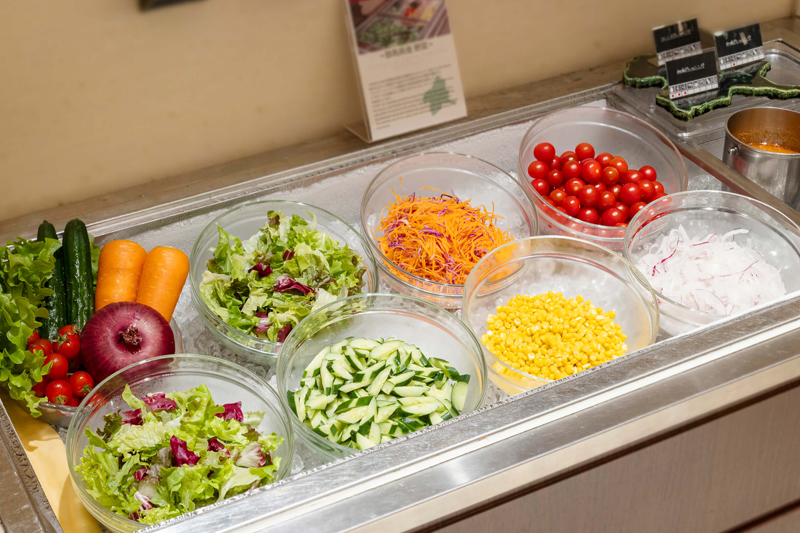 地産地消推進登録店として、朝食には新鮮な野菜類に、オリジナル朝カレー、煮込み料理など群馬県産食材をふんだんに用いた和洋のビュッフェスタイルです。皆さまに一日の活力と食べる歓びをお届けいたします。